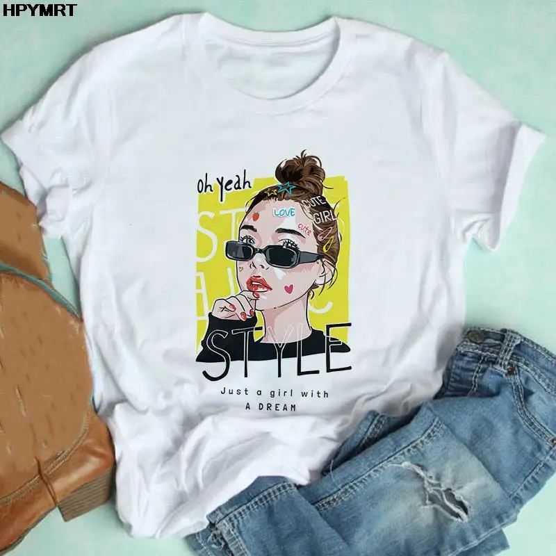 2020 Новая Летняя женская футболка с буквенным принтом Harajuku, фу...