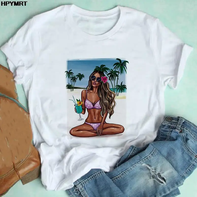 Футболка женская с принтом под заказ, модный топ для отдыха сделай ...