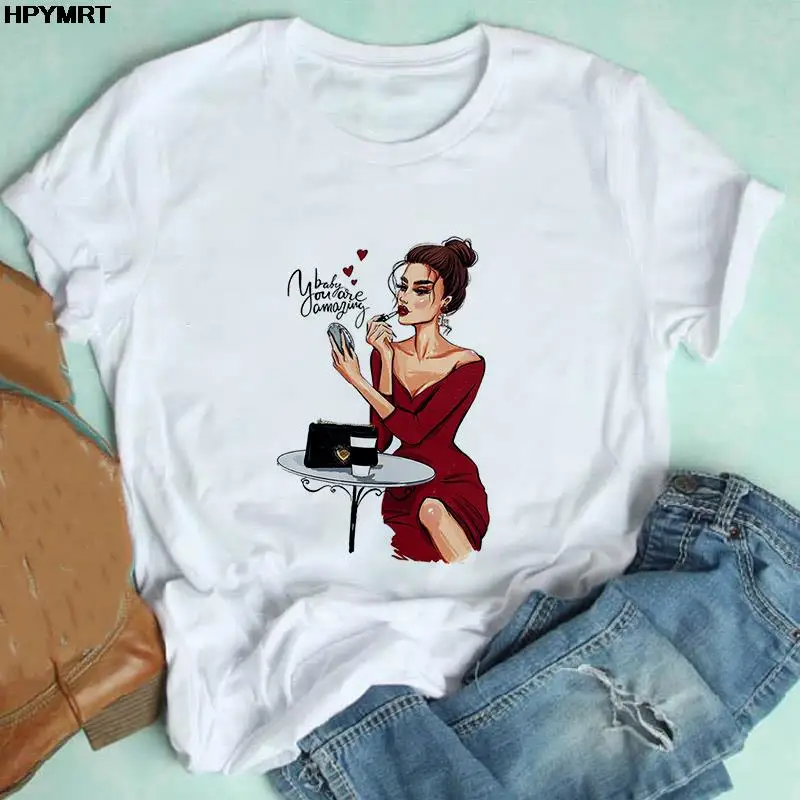 Женская футболка с принтом губ и губной помады, Женская Футболка Ha...