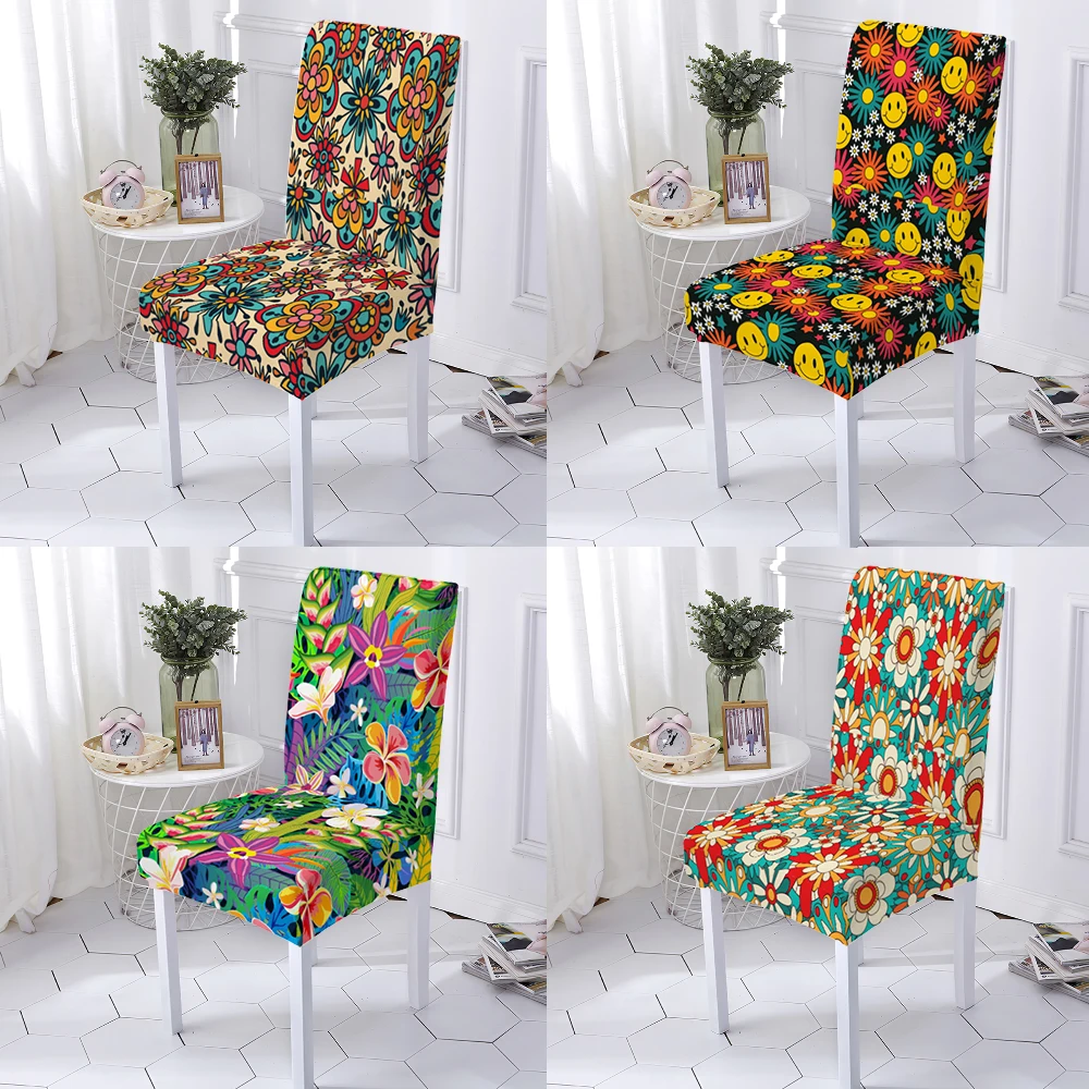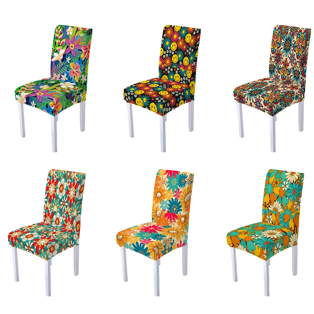 Чехол для стула, эластичный, универсальный, из спандекса, с принтом