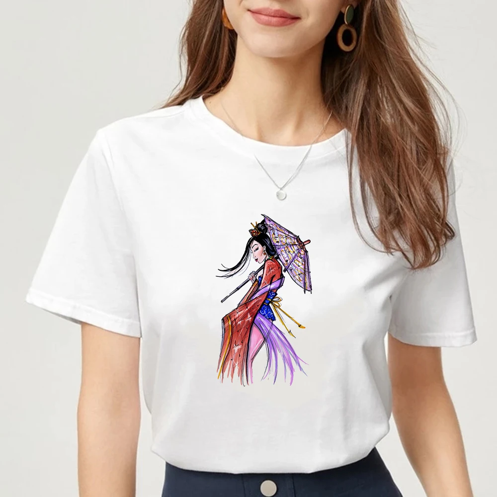Женская футболка принцессы в стиле Харадзюку, креативная мультяшная Универсальная футболка высокого качества с коротким рукавом и круглым вырезом из мультфильма Диснея Мулан