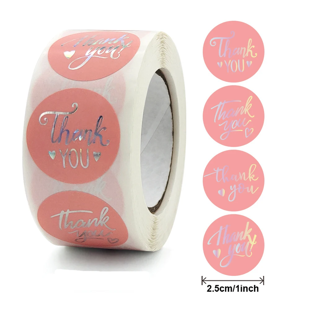 Золотая фольга, Розовые наклейки Thank You, 500 шт., зеленая этикет...
