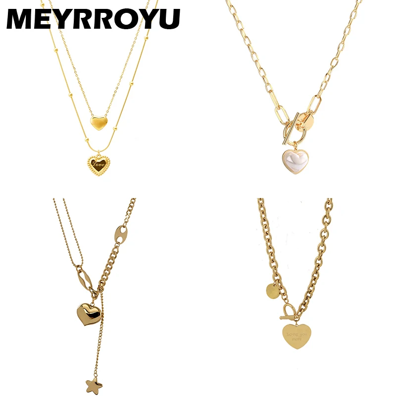 бижутерия для женщин 2021 цепочка на шею женская жемчуг ожерелье чокер на шею Женское колье MEYRROYU, из нержавеющей стали, с подвеской в виде сердца