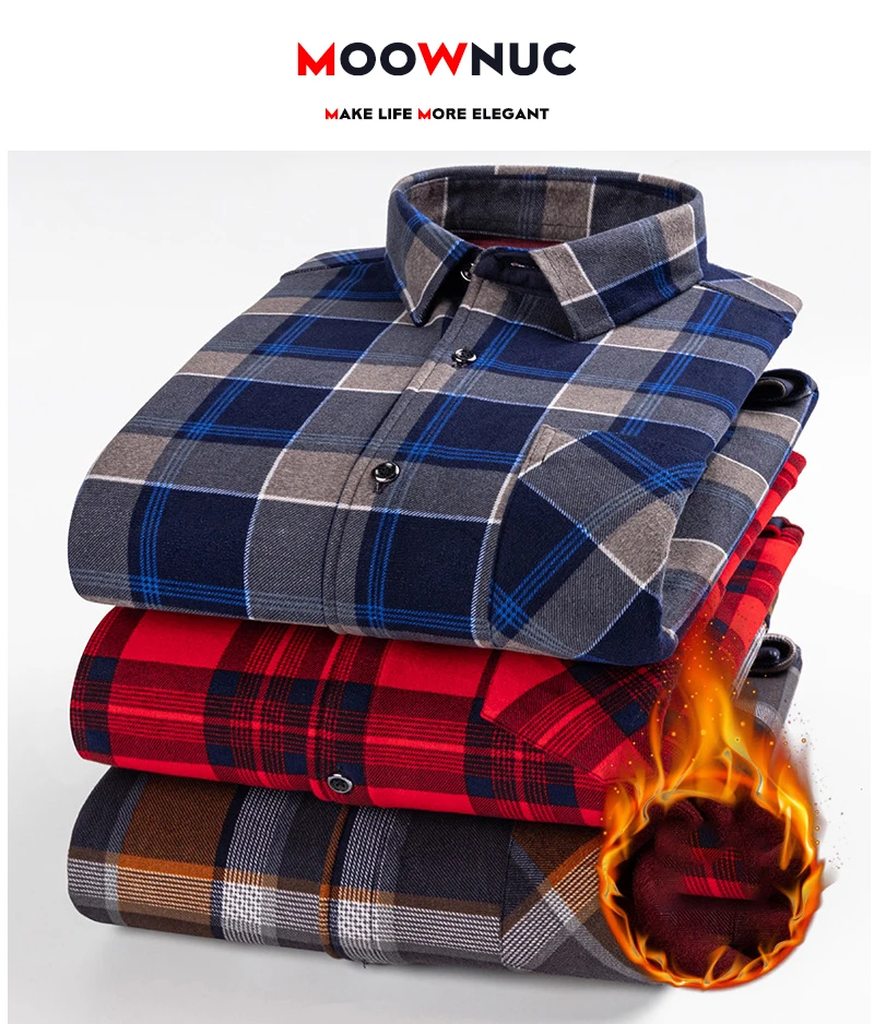 Толстая Модная рубашка, мужские зимние блузки, топы, уличная одежда 2021, мужское уличное платье с длинным рукавом, уличное платье, мужское повседневное теплое молодежное платье MOOWNUC