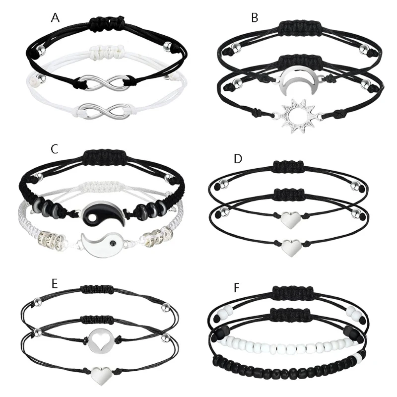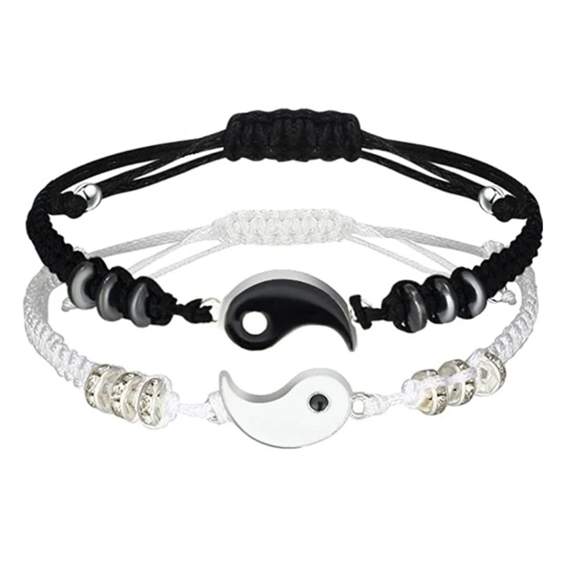 2 шт.компл. браслет Tai Chi для пар браслет для пар Инь Янь черный белый подходящий браслет для лучших друзей
