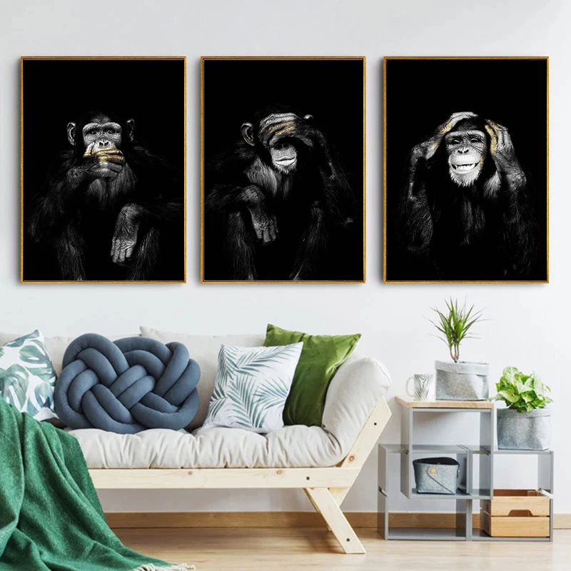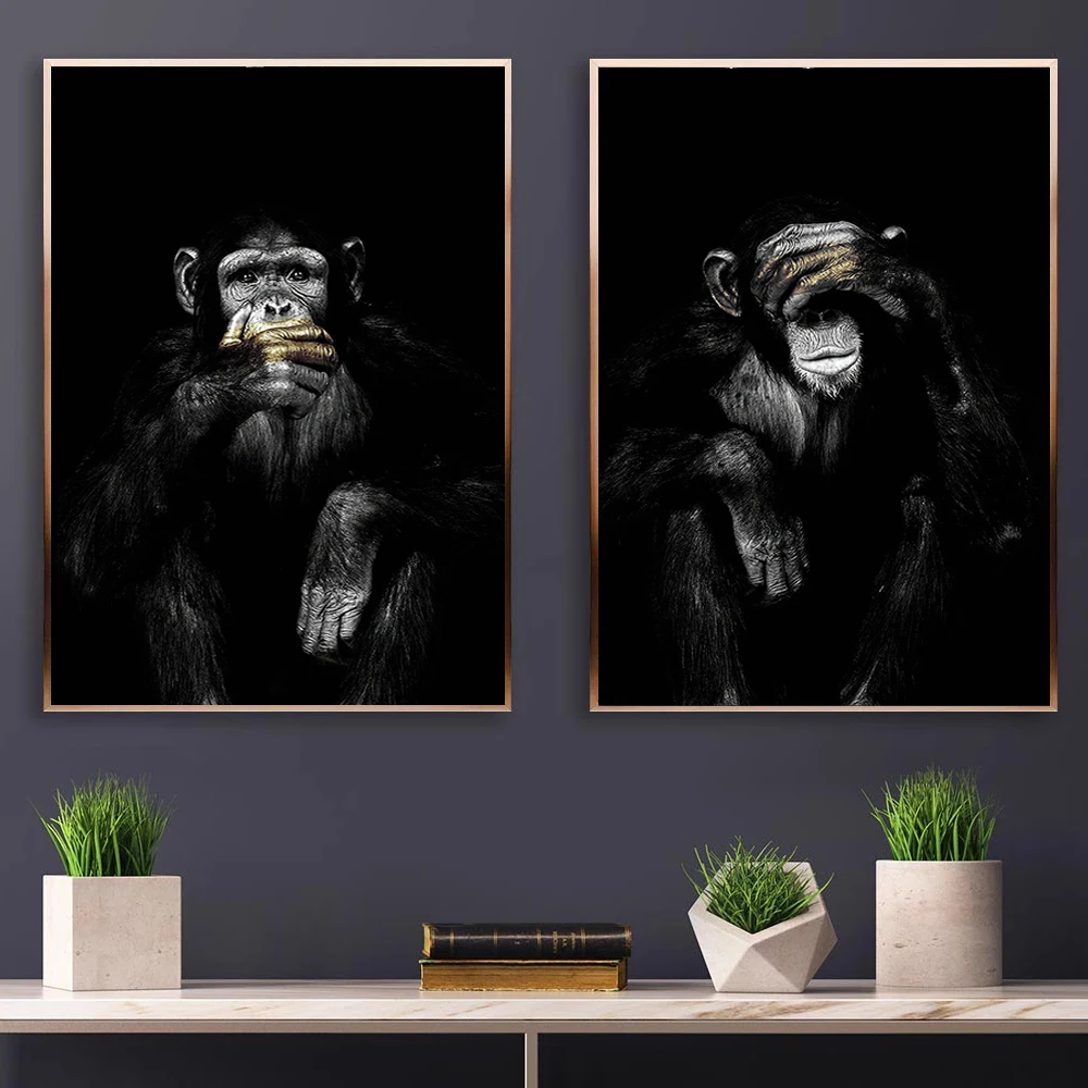 Животные настенные постеры Темный 3 забавная обезьянка холст картина стены искусства изображение с абстрактным принтом для гостиной отеля домашний декор