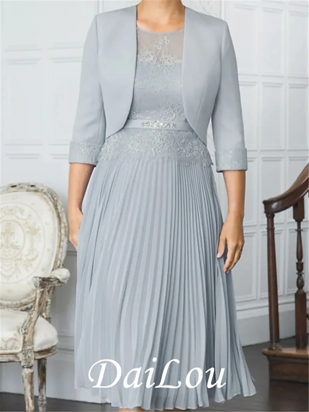 ТРАПЕЦИЕВИДНОЕ ПЛАТЬЕ для матери невесты, элегантное иллюзионное платье с круглым вырезом, шифоновое платье длиной ниже колена со складками и блестками, вышивка, 2019