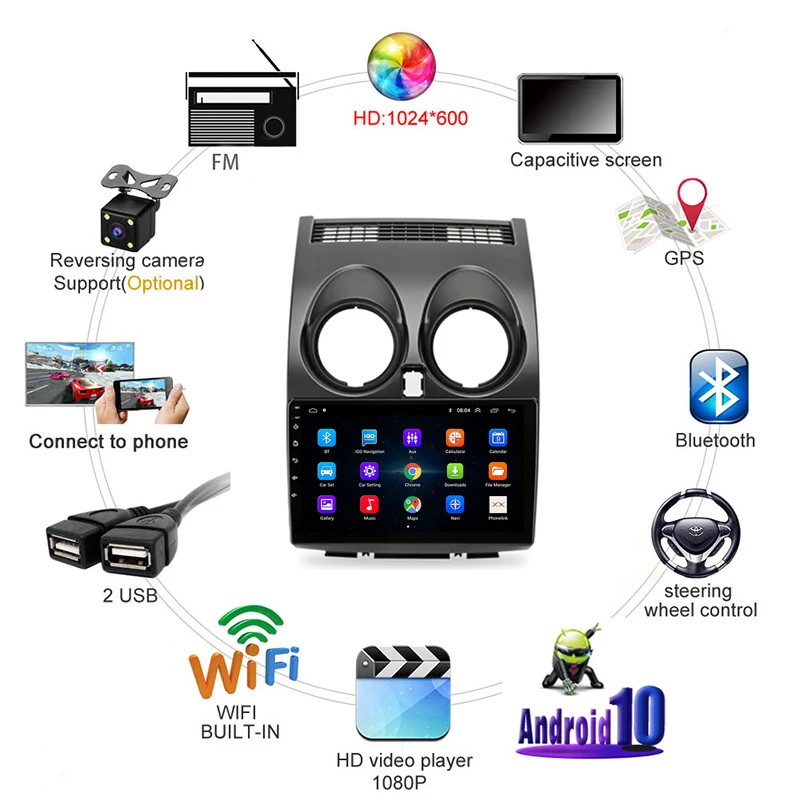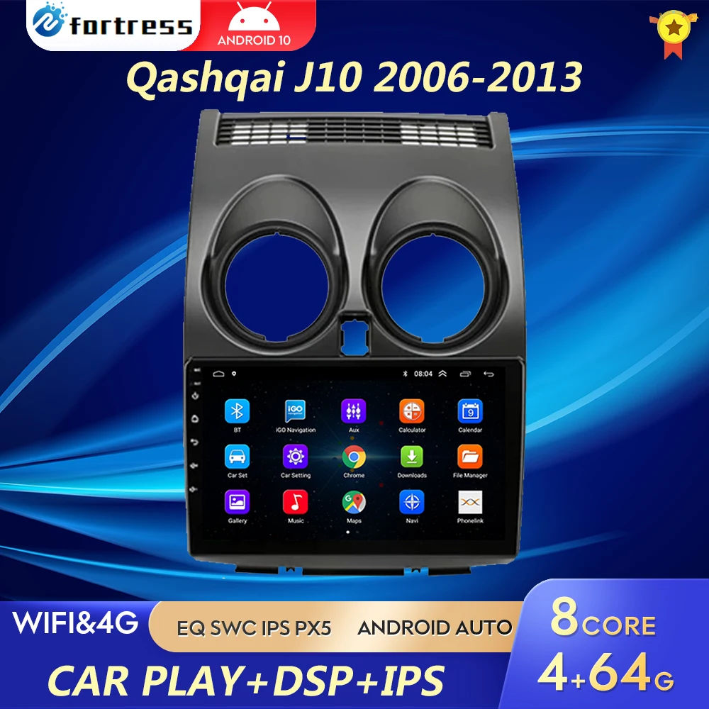 Автомобильная Мультимедийная магнитола с голосовым ИИ-интерфейсом, Android, для Nissan Qashqai J10, 2006, 2007, 2008-2013, Carplay, 4G, 2din, GPS, Авторадио