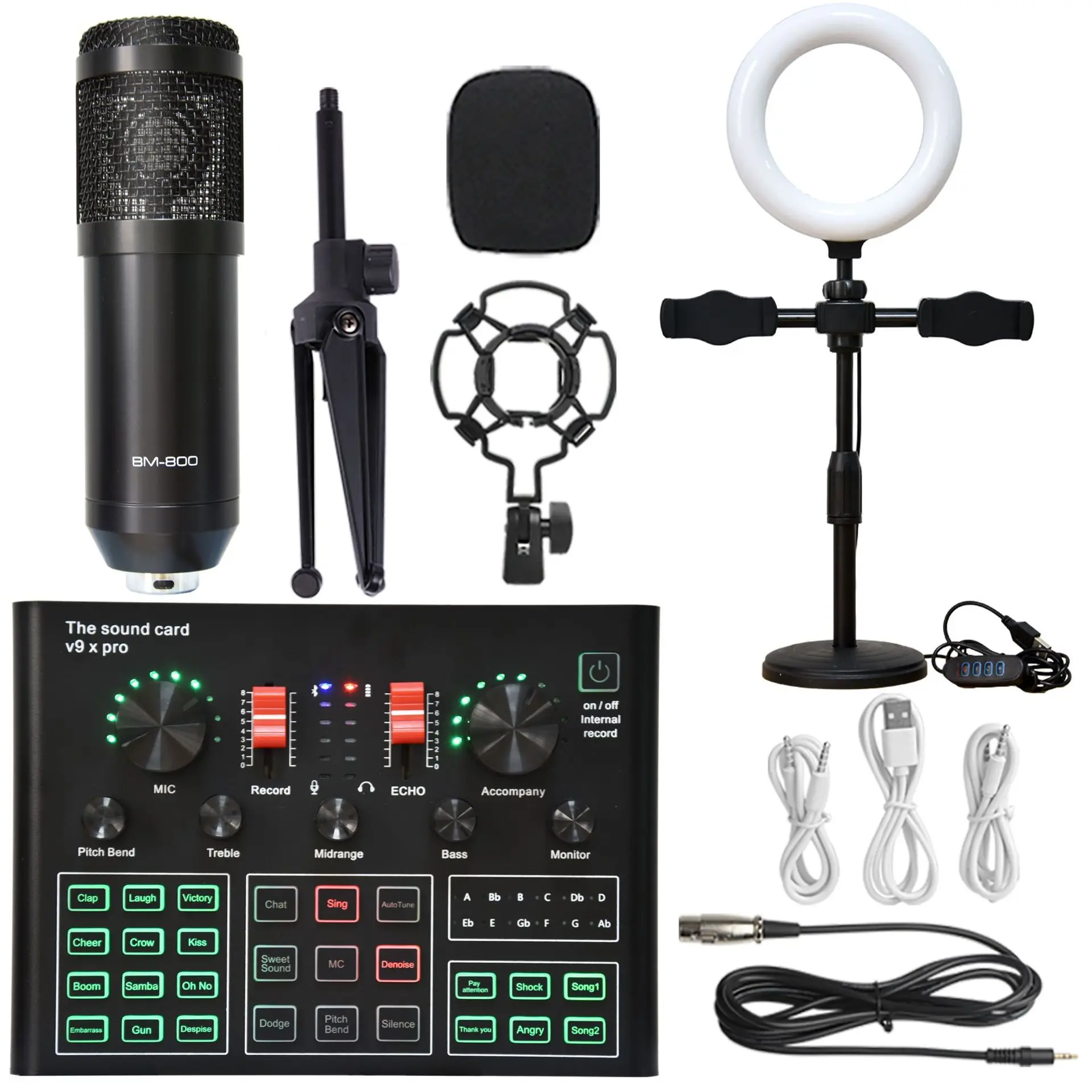 Портативная звуковая карта V9XPro, студийный смеситель с шумоподавлением, микрофон, голосовое управление, живое вещание, для телефона, компьютера, запись V9X Pro
