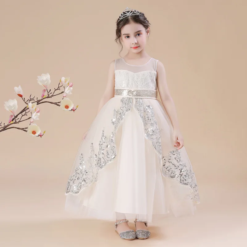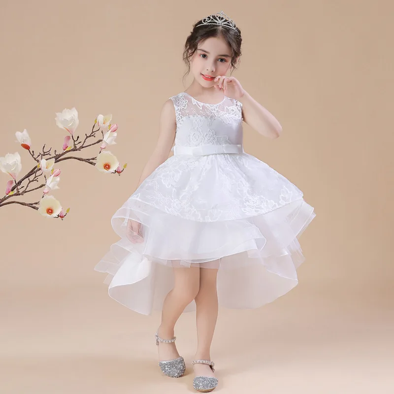 Белое свадебное платье для подружки невесты, летнее платье для выпускного вечера, бальное платье для маленьких девочек от 2 до 14 лет, одежда для детей, платье принцессы для дня рождения
