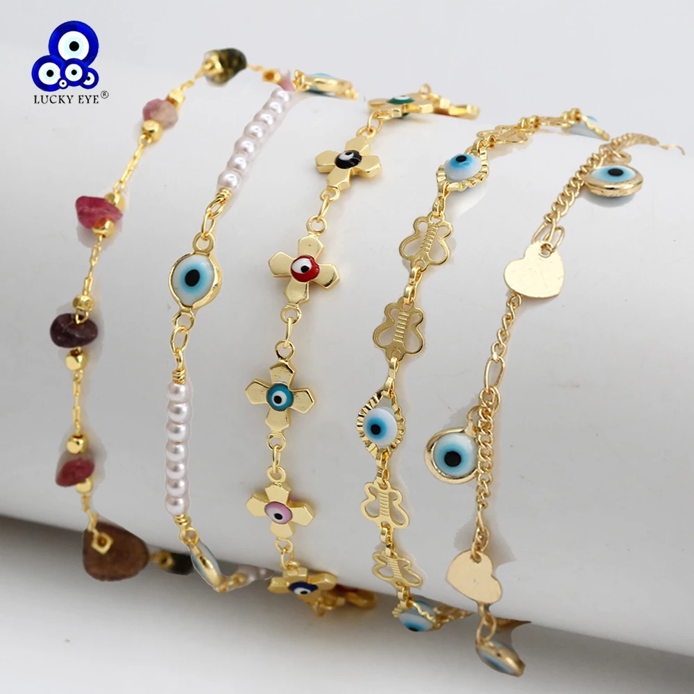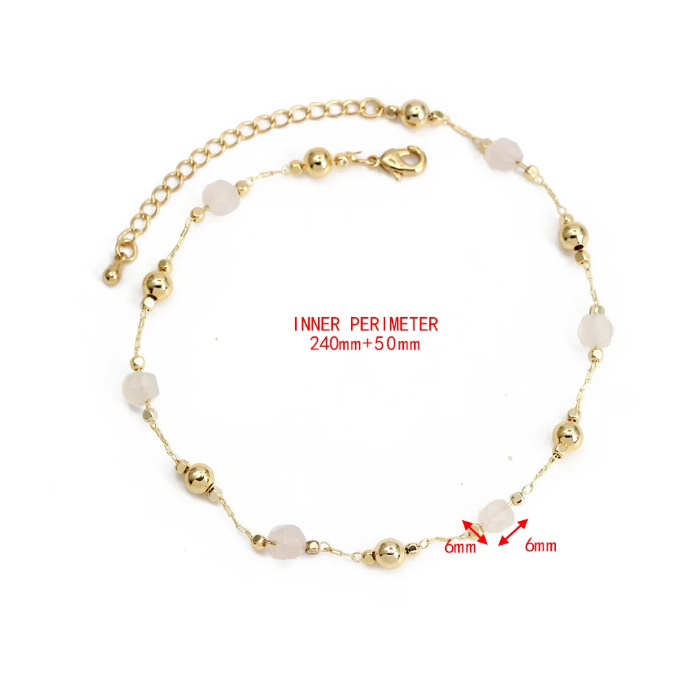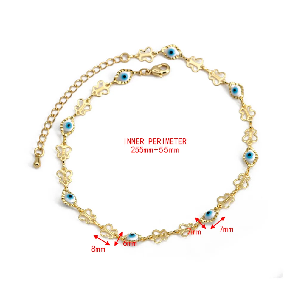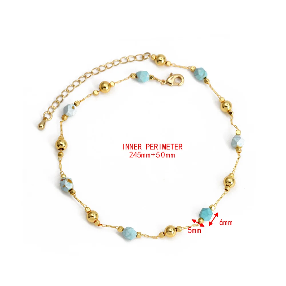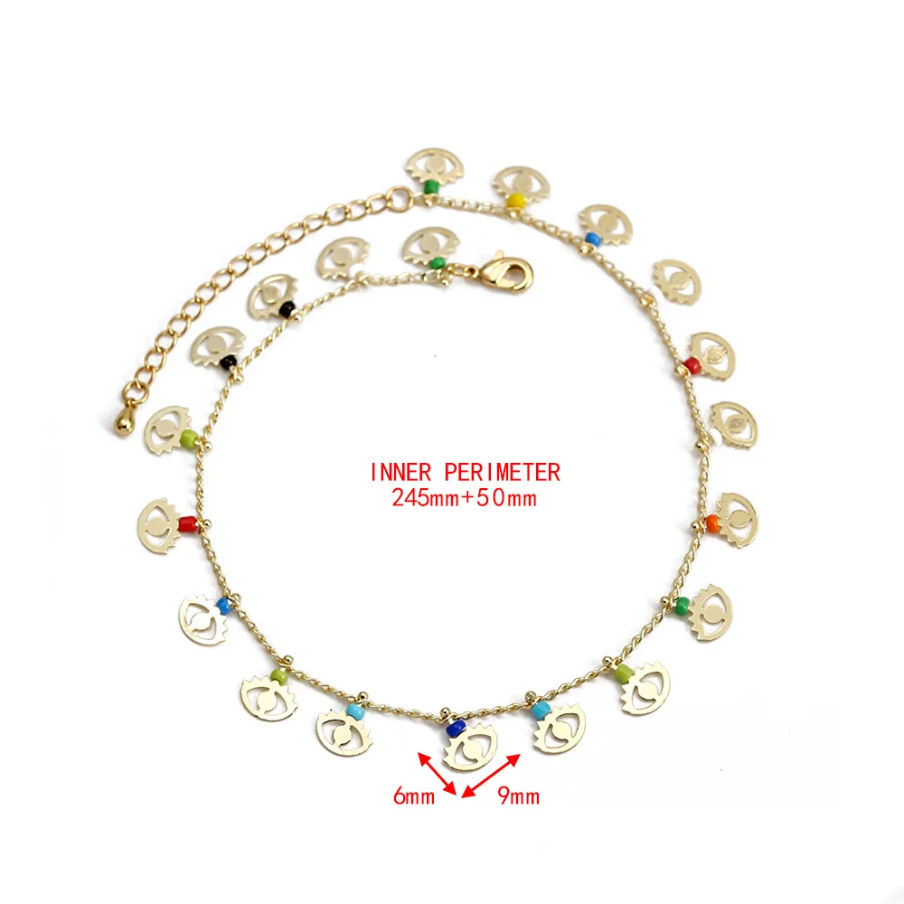 Браслет на ногу Lucky Eye Fatima BE480 с регулируемым жемчугом и натуральным камнем