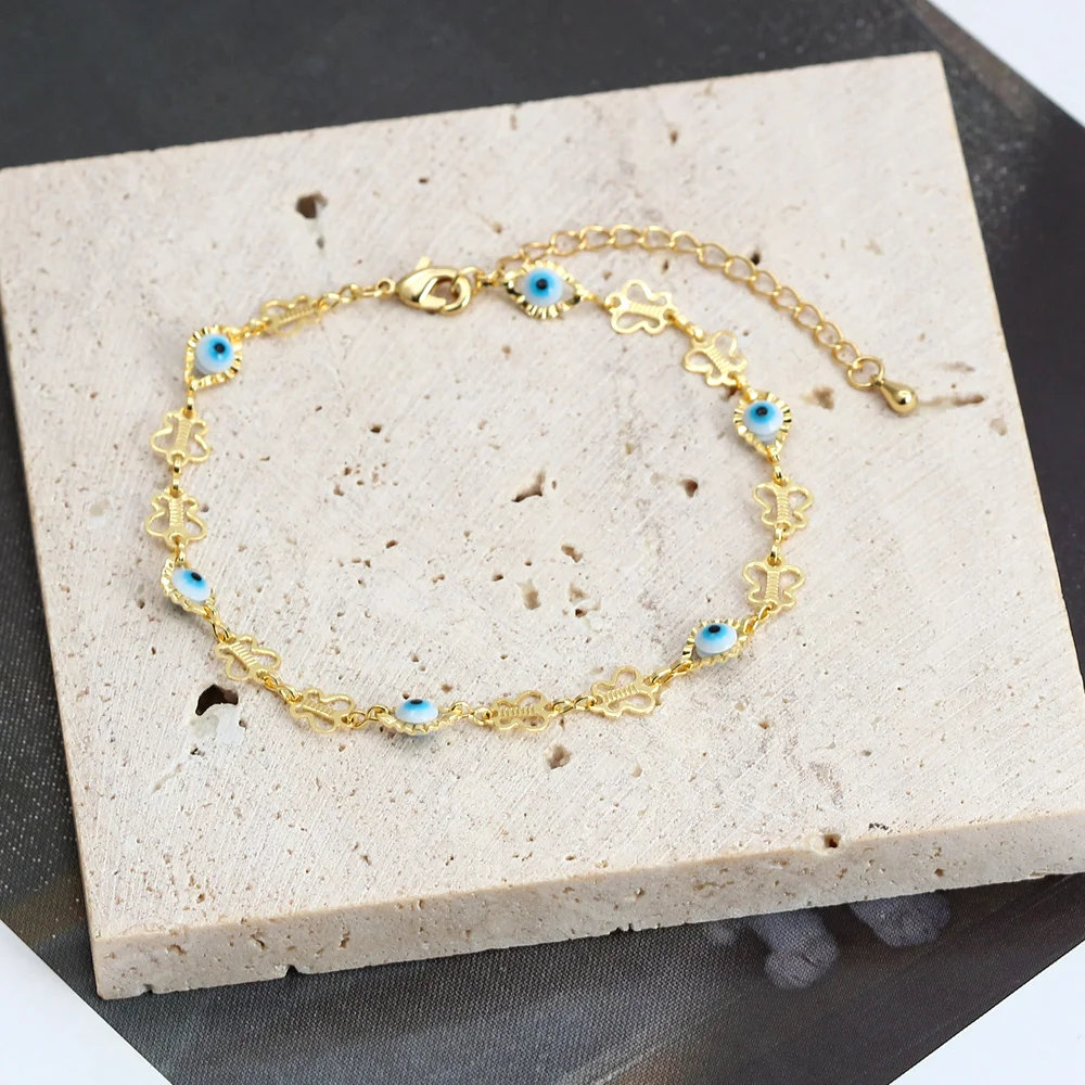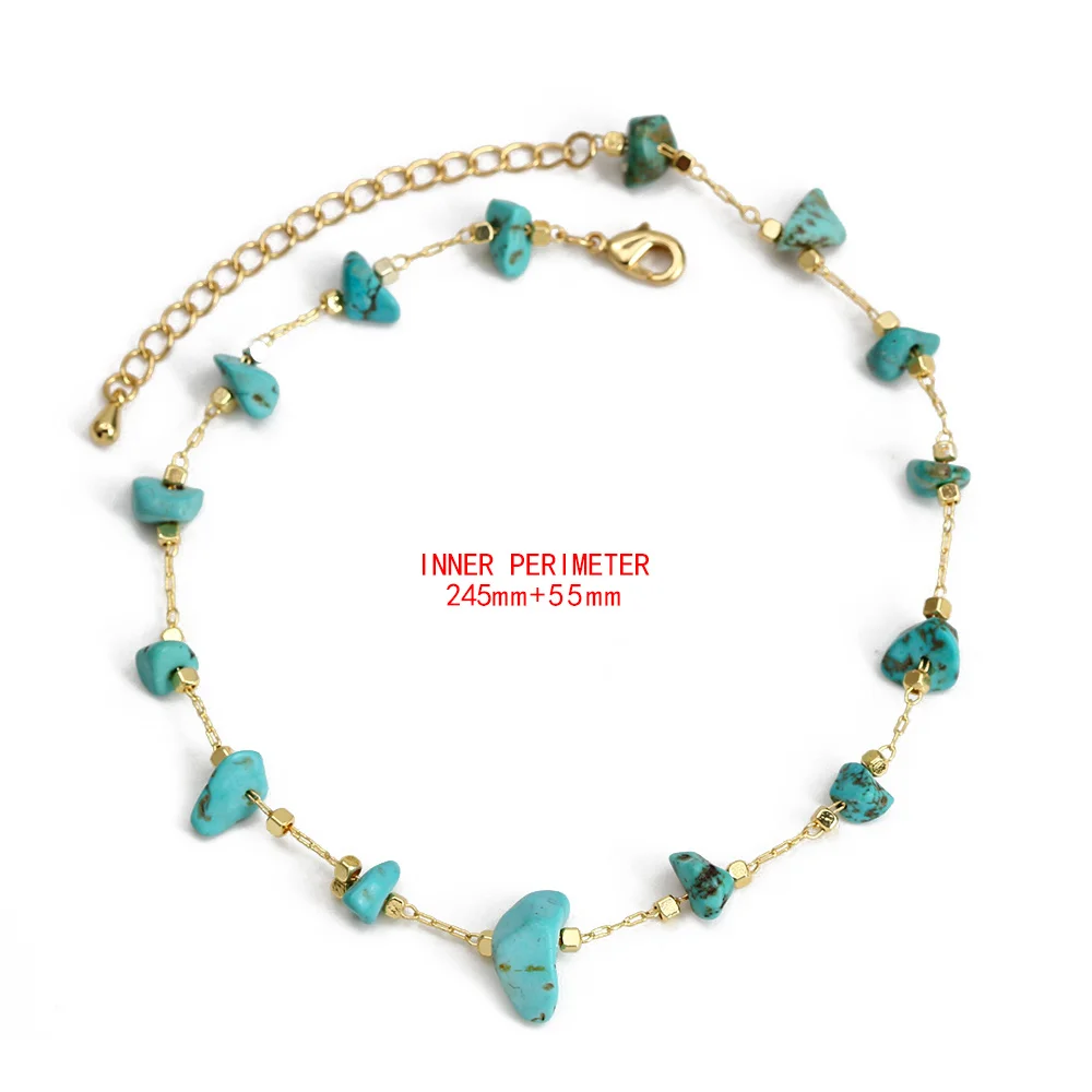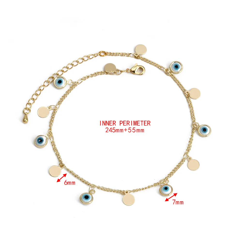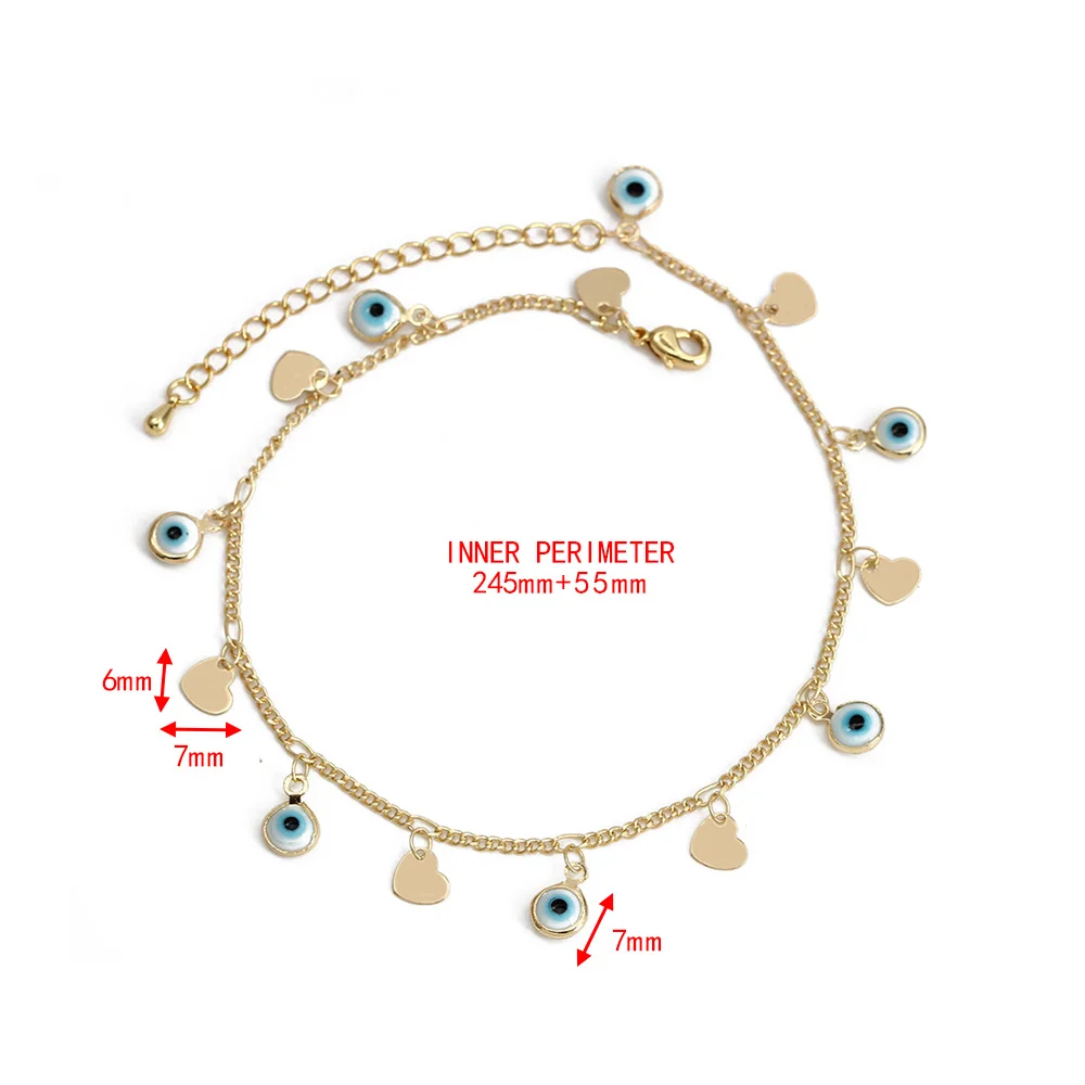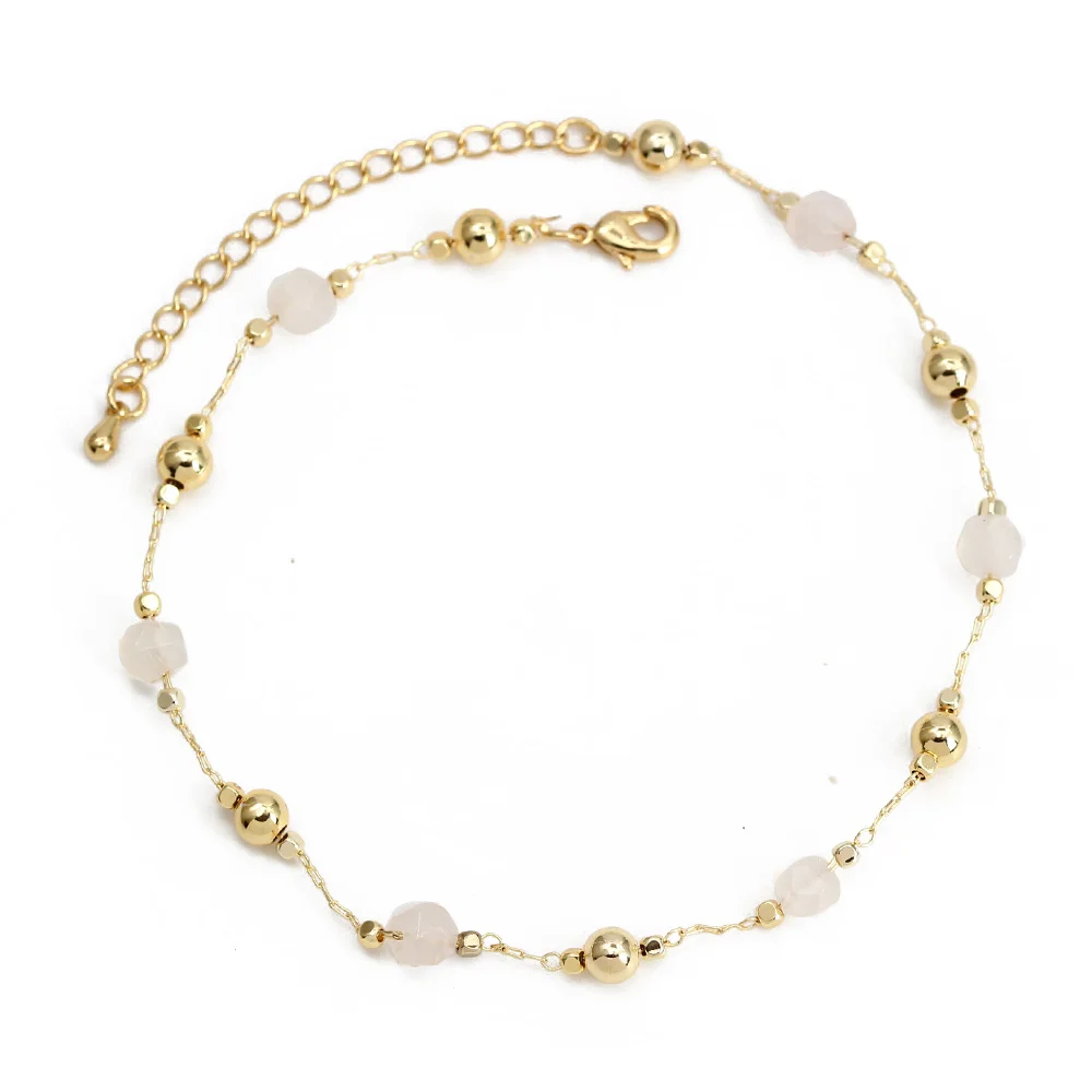 Браслет на ногу Lucky Eye Fatima BE480 с регулируемым жемчугом и натуральным камнем