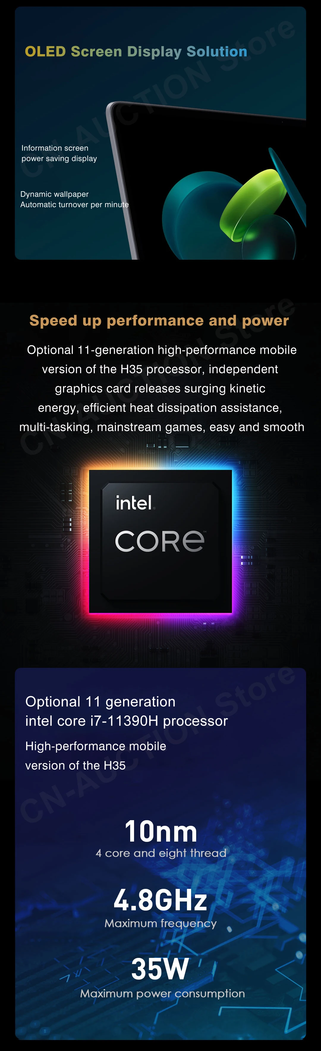 Intel 11-го поколения®Сердечник™I5-11320H процессорОснование турбо частота 3,2 ГГцСамая высокая частота ядра 4,5 ГГцЧетырехъядерный и восьминиточный процессорУровень 3 кэш-памяти 8 МбIntel Iris Xe GraphicsДвухканальная память 16 Гб DDR4 3200 МГцВысокоскоростная память PCIe 512 ГБСеребряный полумесяц