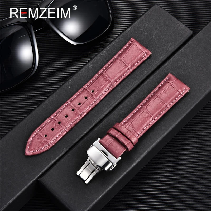 Ремешок для часов REMZEIM из натуральной кожи, женский разноцветный браслет для наручных часов, 18 мм 20 мм 22 мм 24 мм