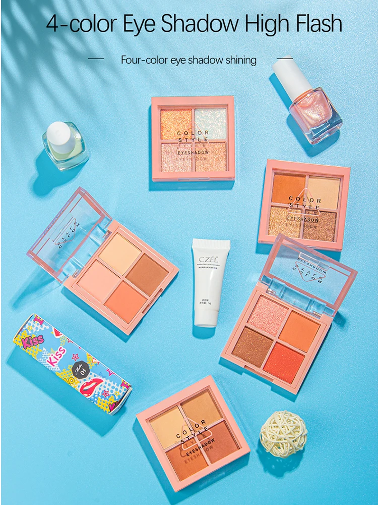 Набор кистей для макияжа, 5 шт.компл., искусственная Кисть для макияжа, 4 цвета, Мерцающая матовая палитра теней для век, профессиональная косметика