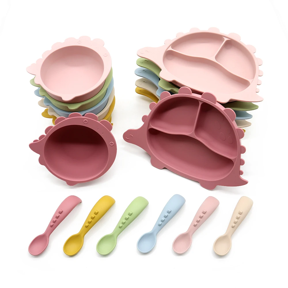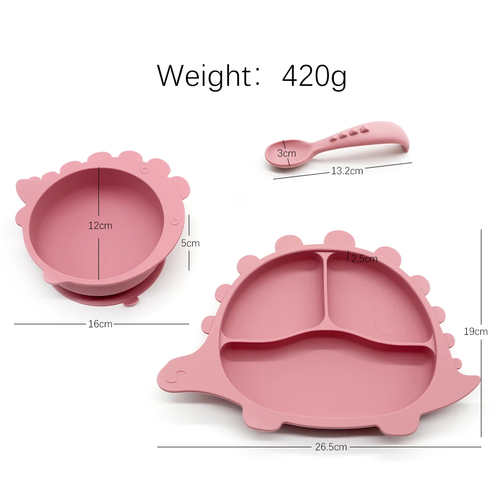 TYRY.HU детская силиконовая тарелка детская миска и тарелка динозавр мультфильм набор ложка и вилка силиконовая для кормления малышей миска посуда детская посуда