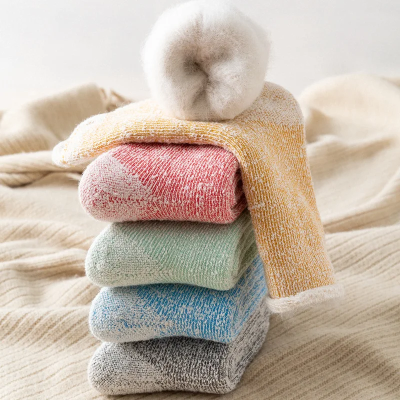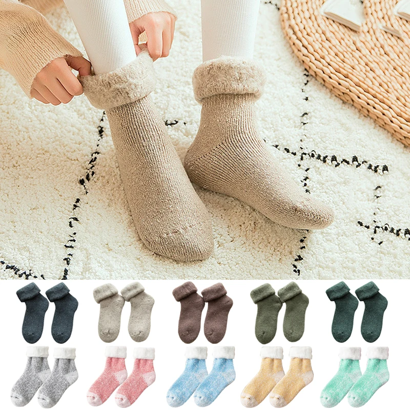 Плотные однотонные носки из плюша, лыжные носки средней длины, шерстяные зимние теплые носки для мужчин и женщин, 1 пара
