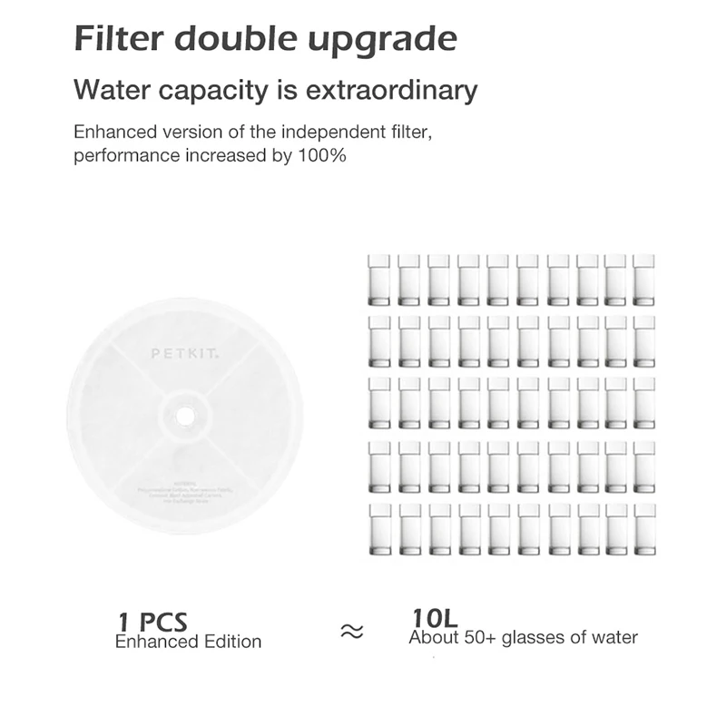 1 .. хлопковый фильтр 2 раза фильтрация для удаления мелких частиц и тонких волос 2. Фильтр с активированным углем Глубина фильтрации, Удаление хлора и микроорганизмов, Улучшение вкуса 3. Смола для замены Смягчает качество воды и удаляет ионы кальция и магния, которые вызывают камни мочи домашних животных