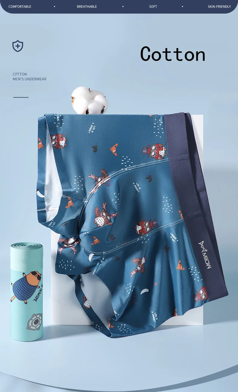 MiiOW 4/3 шт., мужское нижнее белье из чистого хлопка, антибактериальные трусы-боксеры с принтом, мужские трусы, дышащие мужские трусы, боксеры, шорты 5XL