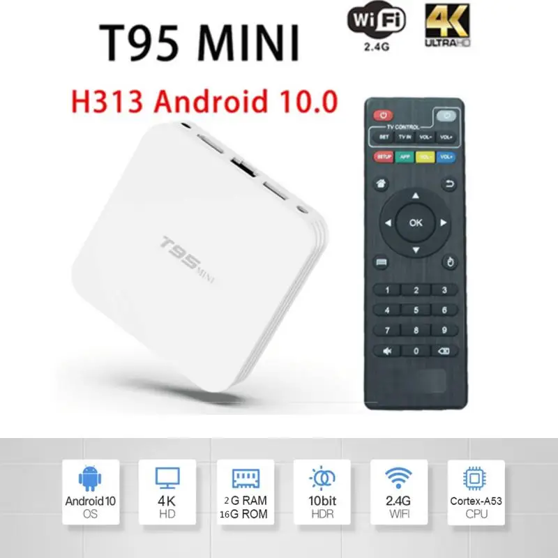 ТВ-приставка T95 Mini Iptv, Android 10,0, 4 + 64 ГБ, 2,4 ГГц, Wi-Fi, 4K, HDR, поддержка Google Youtube, медиаплеер