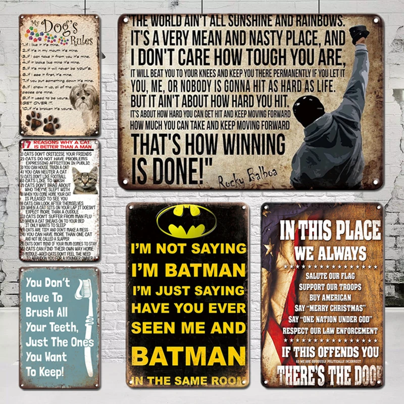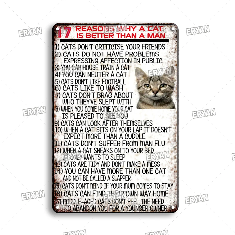 Винтажные правила в виде кота, собаки, металлическая искусственная кожа, персонализированная мужская пещера, декор для спальни, металлическая пластина, знаки, ретро, наклейка на стену для гостиной