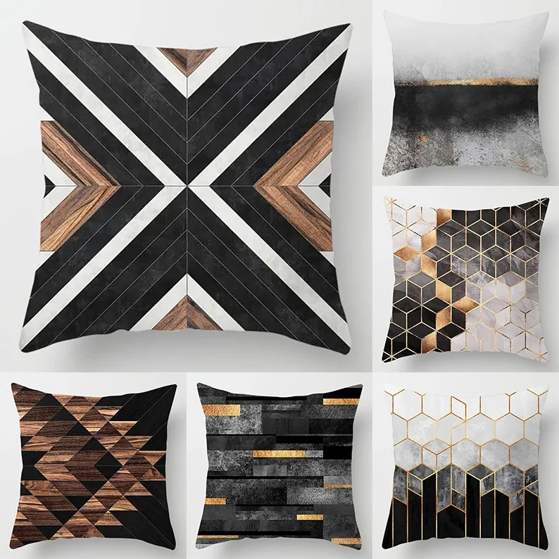 Декоративная подушка для дома и офиса, с геометрическим принтом в полоску