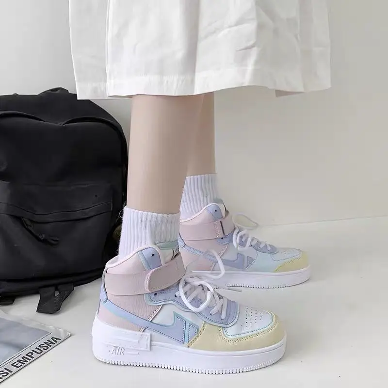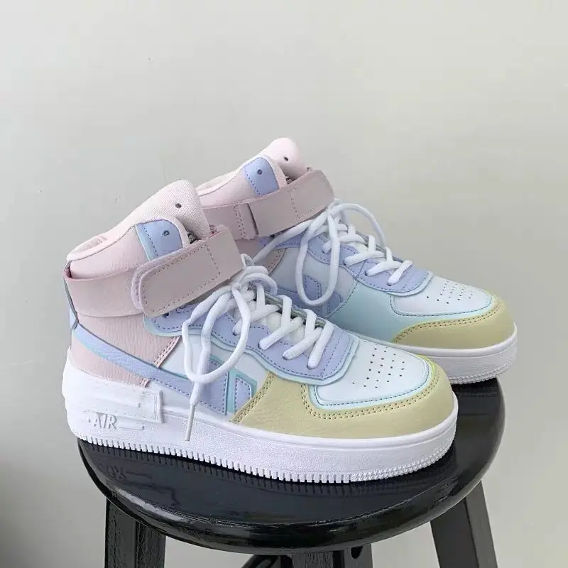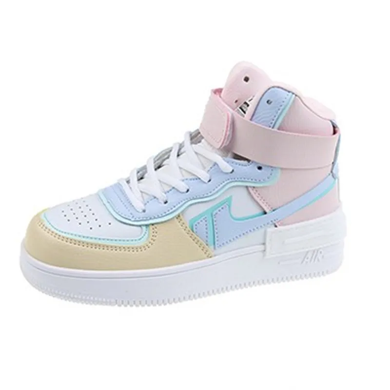 Кроссовки женские на платформе, дышащие высокие, белые, карамельные цвета, плоская подошва, модная обувь на осень