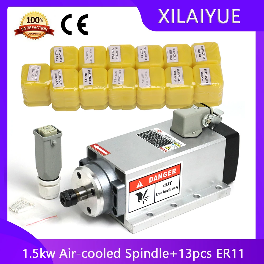 Комплект шпинделя с воздушным охлаждением, 220 кВт, 1500 В, шпиндель фрезерного станка с ЧПУ мощностью Вт, шпиндель квадратного фрезерного станка + Цанга ER11 13 шт. для деревообрабатывающего фрезерного станка с ЧПУ