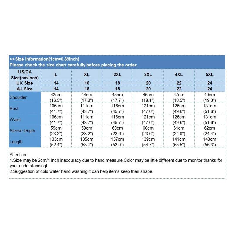 Size TypeL XL XXL 3XL 4XL 5XL Plus Size