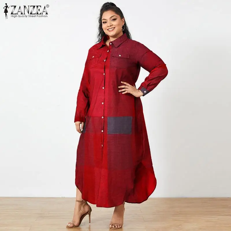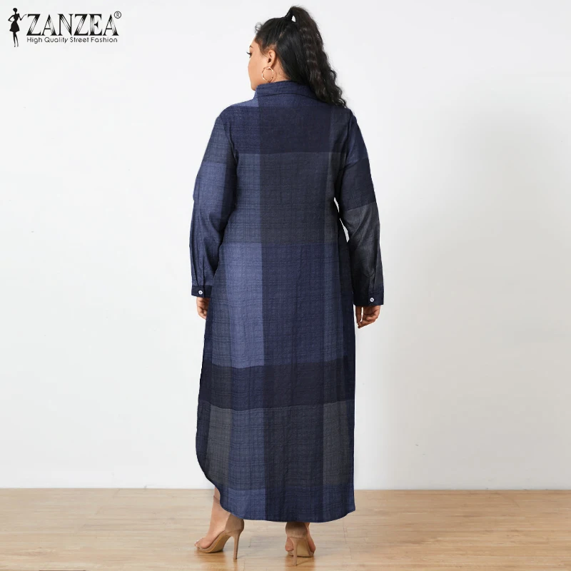 Женское богемное платье-макси Elagant ZANZEA, модное клетчатое длинное платье в клетку, осень 2022, праздничные Длинные платья-рубашки, женское платье