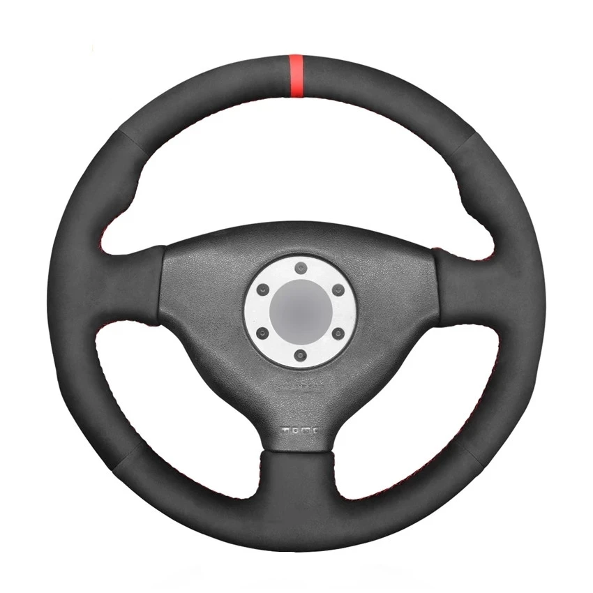 Ручной работы черная замша красный маркер чехол рулевого колеса авт...