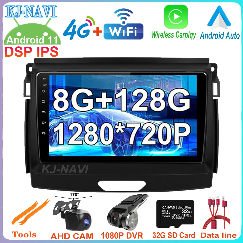 Автомобильный радиоплеер 9 "IPS экран Android 11 для Ford Ranger T6 2016 2017 2018 2019 2020 Автомобильный видео мультимедиа GPS навигатор без DVD