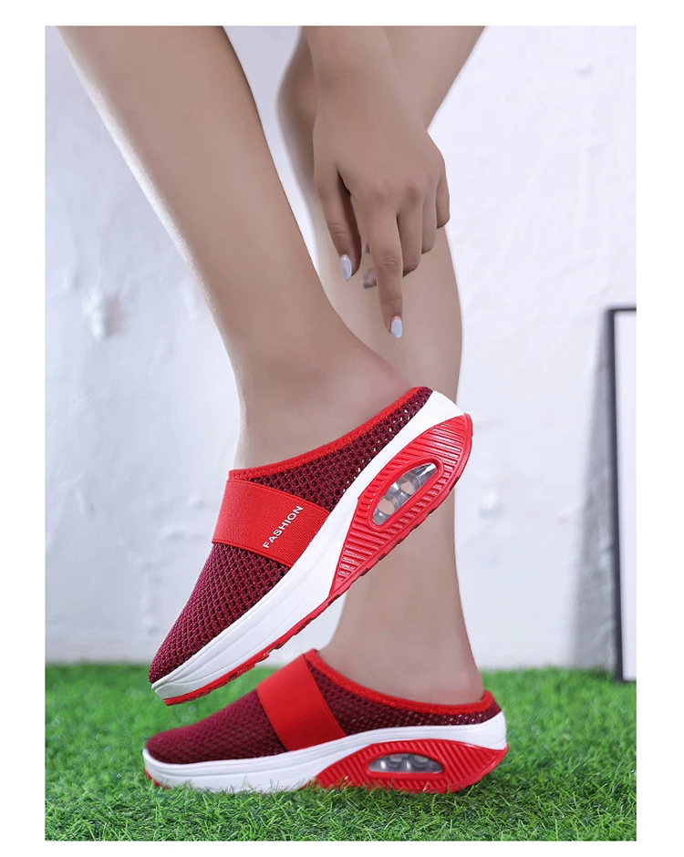 Женские кроссовки на танкетке, легкие ортопедические кроссовки без шнуровки из сетчатого материала, с воздушной подушкой, для прогулок, 2022