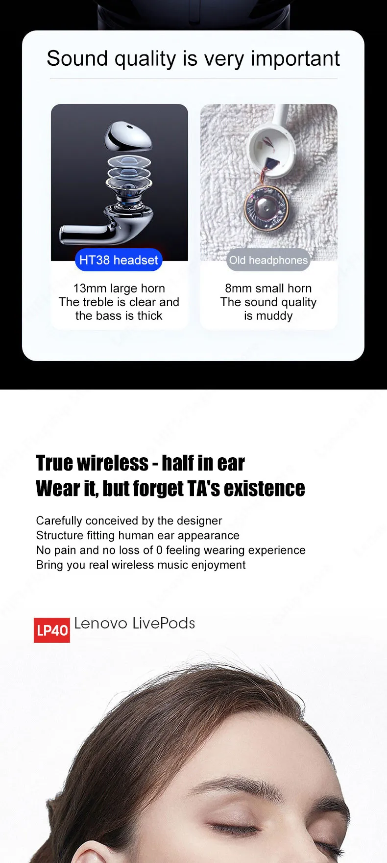 О дропшиппинг:1. Принимаем дропшиппинг, и мы не ставим никаких счетов-фактур, qr-кодов, рекламных акций в пересылке, так что не волнуйтесь, просто купите его, мы сделаем все хорошо для вас.2. Мы гарантируем, что каждое устройство тщательно проверяется перед отправкой, поэтому все продукты могут гарантировать 100% Высокое качество перед отправкой. Большое спасибо!Примечание:Lenovo: HT38Особенности1, Bluetooth V5.0, Поддержка большинства устройств bluetooth и низкое энергопотребление2, 250 мАч чехол для зарядки может полностью заряжать 2 наушника примерно в 5 раз, предлагаем более 24 часов3, с водонепроницаемой технологией, больше не нужно беспокоиться о воде и поте4, 13MMS двойной привод, наслаждайтесь 9D сильным глубоким басом и музыкальным звуком5, популярная функция сенсорного управления, поддержка коммутационных песен, телефонных звонков и голосовых вызовов.Списки аксессуаров:2 * Bluetooth наушники1 * чехол для зарядки1 * USB кабель1 * Руководство пользователя