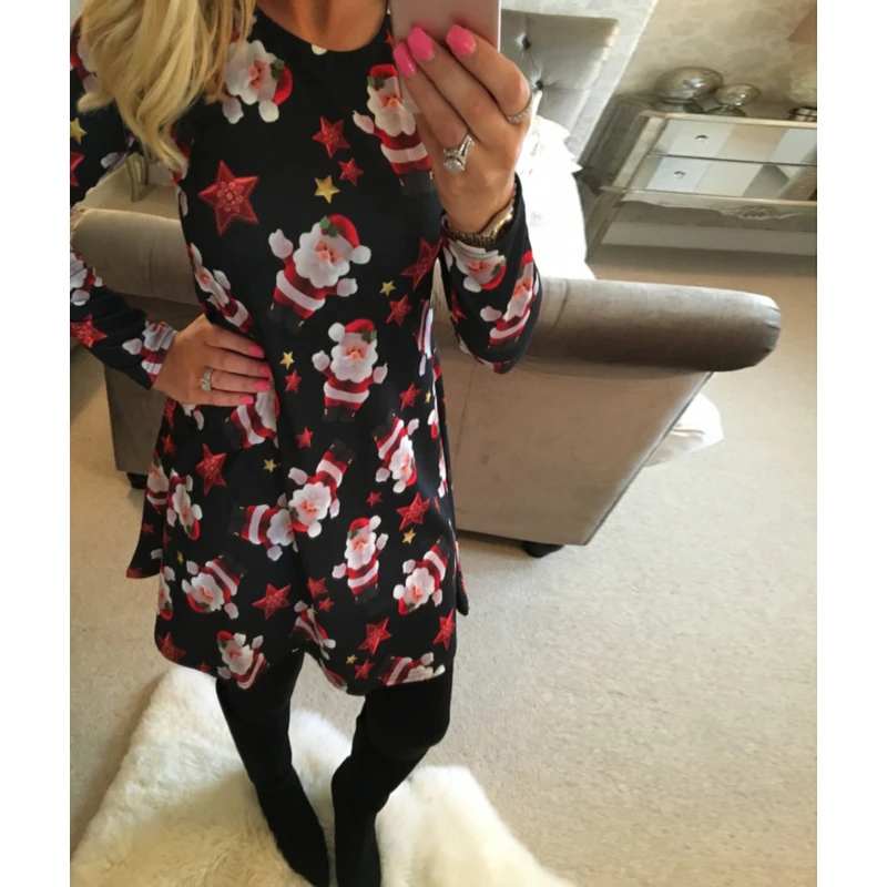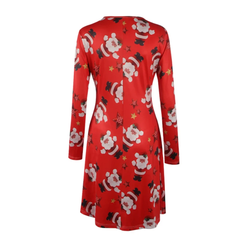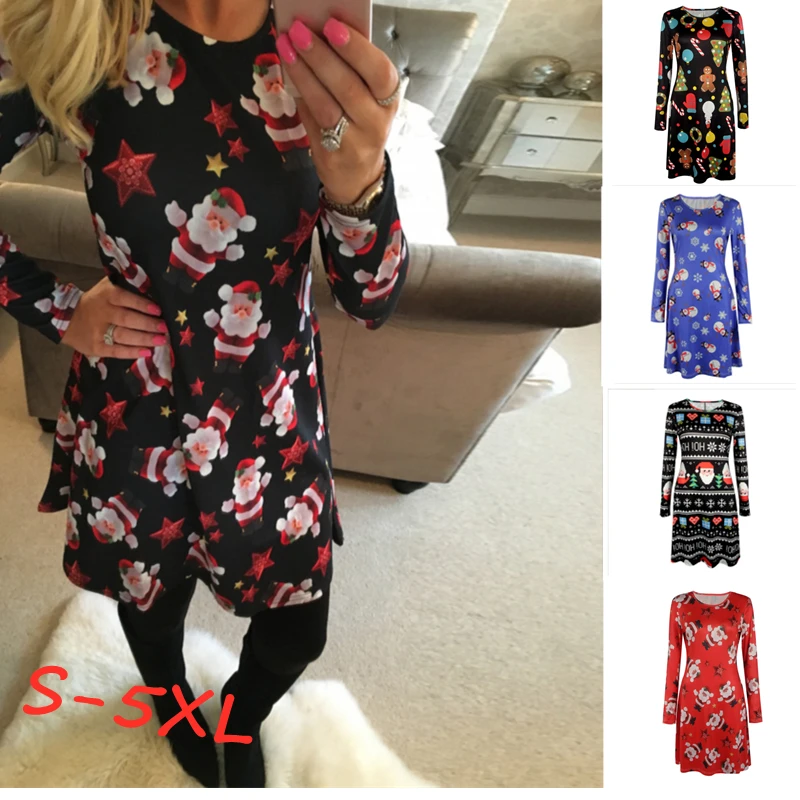 Повседневное платье большого размера 4XL 5XL с мультяшным рисунком, рождественское платье, осенне-зимнее платье трапециевидной формы с длинным рукавом, женская одежда стандартного размера