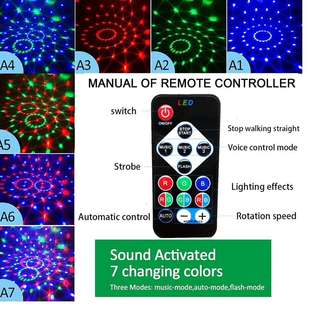 RGB диско-шар светильник для диджея, диско-свет, светодиодный прожектор, Стробоскопическая Лампа для дня рождения, вечеринки, автомобиля, клуба, бара, караоке, Рождества, со звуковой активацией
