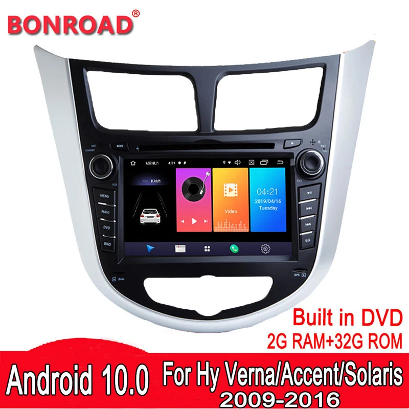 Автомагнитола Bonroad для Hy AccentSolarisI25Verna 2009-2016, 7 дюймов, Android 10, GPS, ОЗУ 2 Гб, ПЗУ 32 Гб