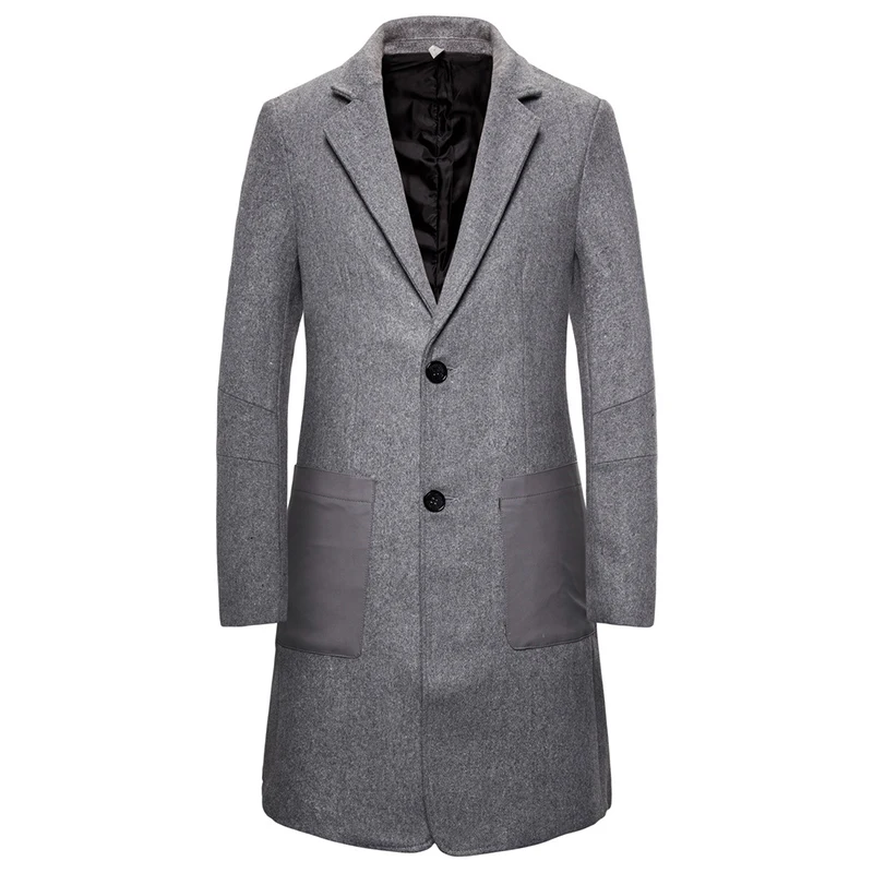 Новинка, осенне-зимняя мужская длинная куртка, однотонное деловое повседневное мужское элегантное модное приталенное шерстяное пальто в стиле кэжуал для мужчин