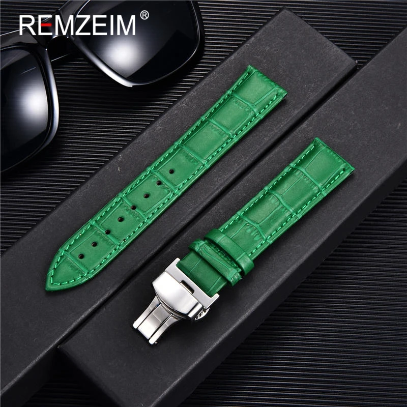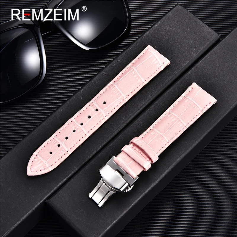 Ремешок для часов REMZEIM из мягкой натуральной кожи Женский, удобный браслет с пряжкой с язычком для часов 18202224 мм + инструмент