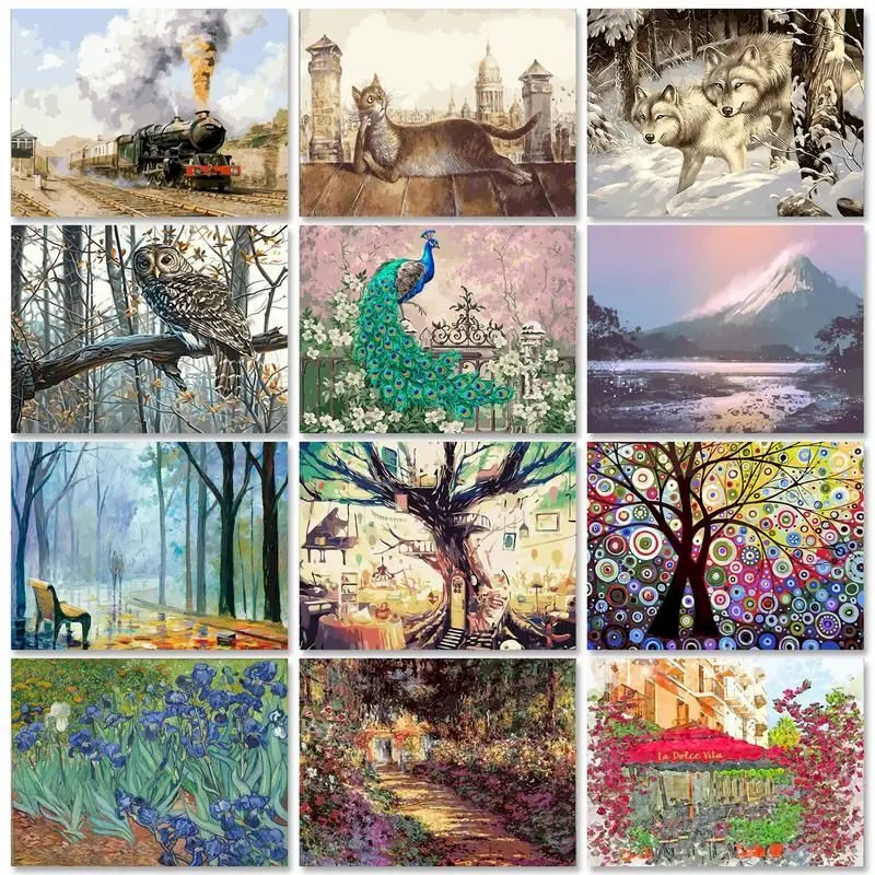diy framed oil paint by numbers40x50cm:40x65cm:60x75cm