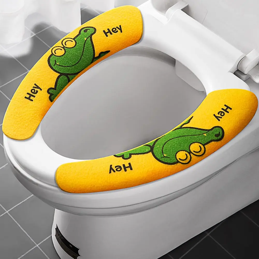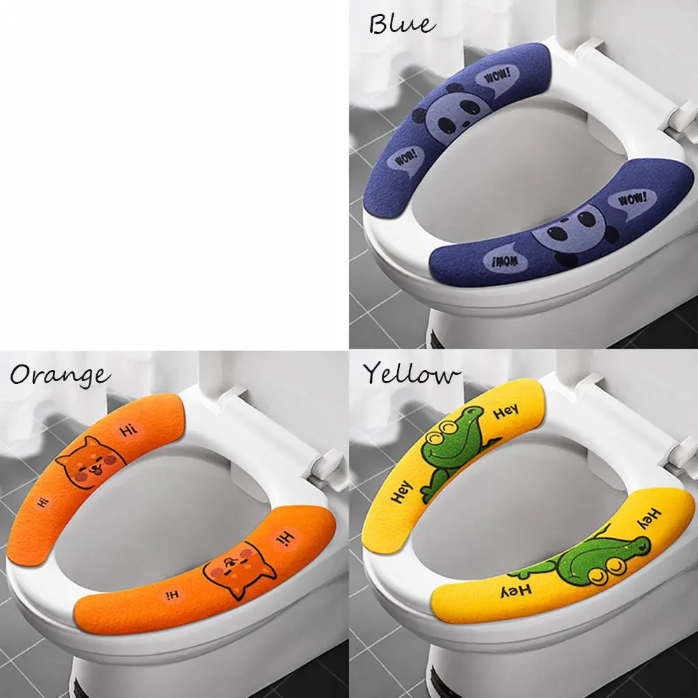 Портативное многоразовое теплое мультяшное сиденье для унитаза, 1 пара, моющийся коврик для ванной, чехол для сиденья, клейкая подкладка для здоровья, товары для дома
