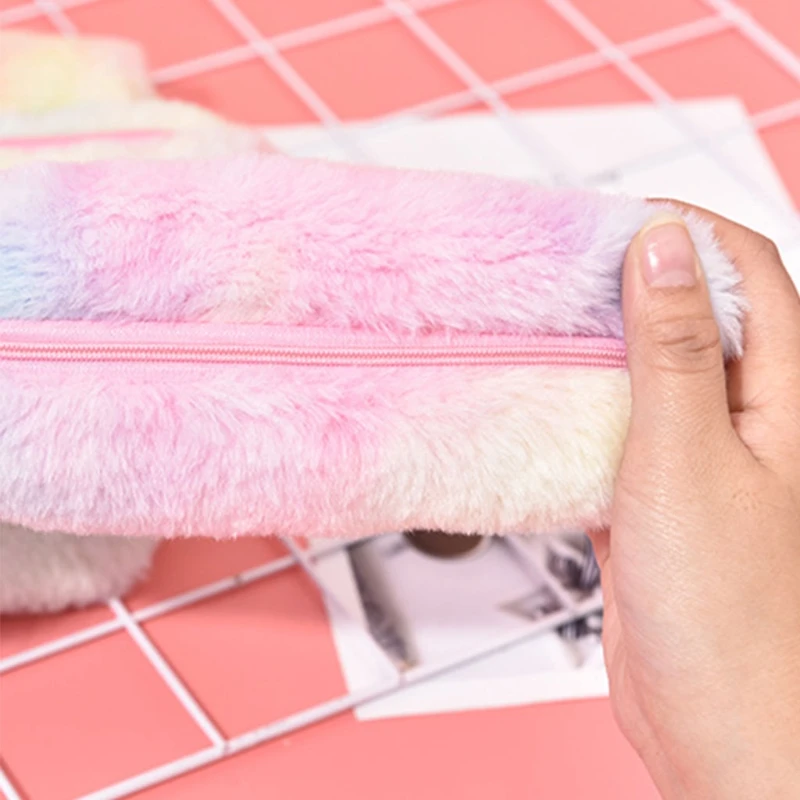 Чехол для карандашей, плюшевый, с градиентным рисунком, для девочек