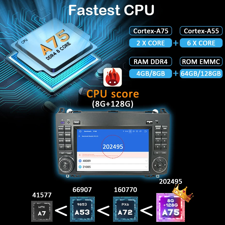Самый быстрый процессорСамый быстрый процессор на современном рынке.Лучше, чем PX5 PX6 7862 9853 или другие ЦПAntutu Score- 202495, это самый высокий балл во всех ЦП в настоящее время