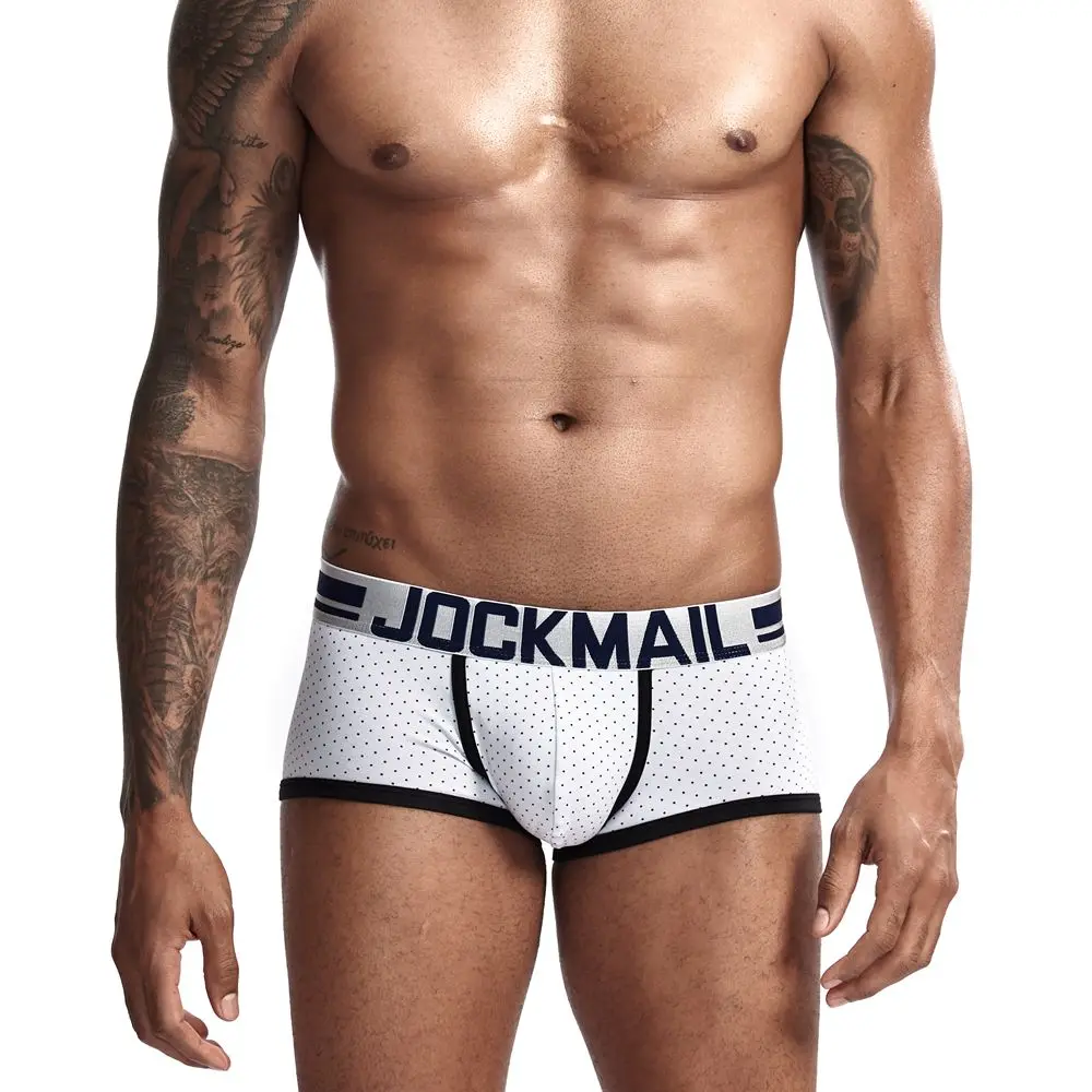 Трусы-боксеры JOCKMAIL мужские в горошек, пикантное нижнее белье с заниженной талией, дышащие хлопковые спортивные повседневные шорты