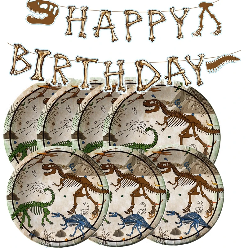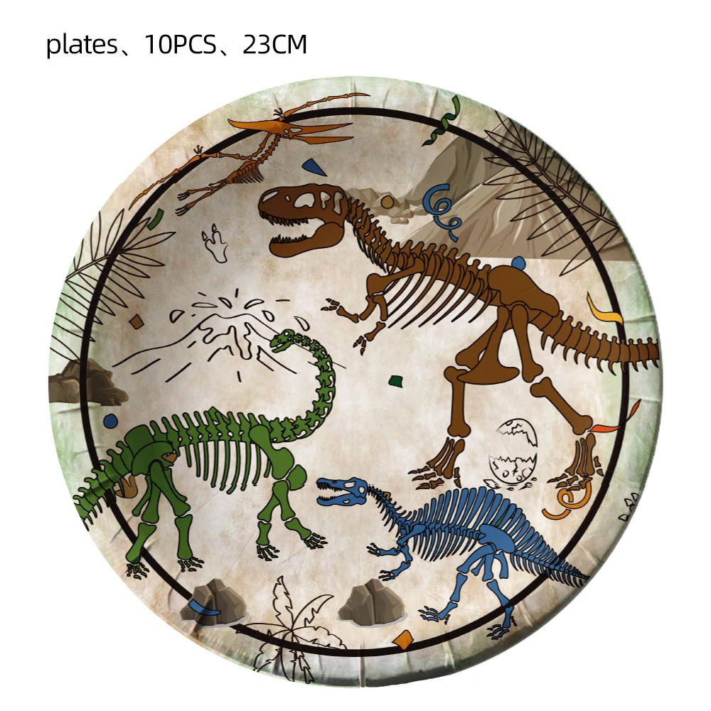 Бумажная тарелка с ископаемым рисунком динозавра на день рождения, выпускной вечеринку, чашка, флаг, посуда, декоративные принадлежности