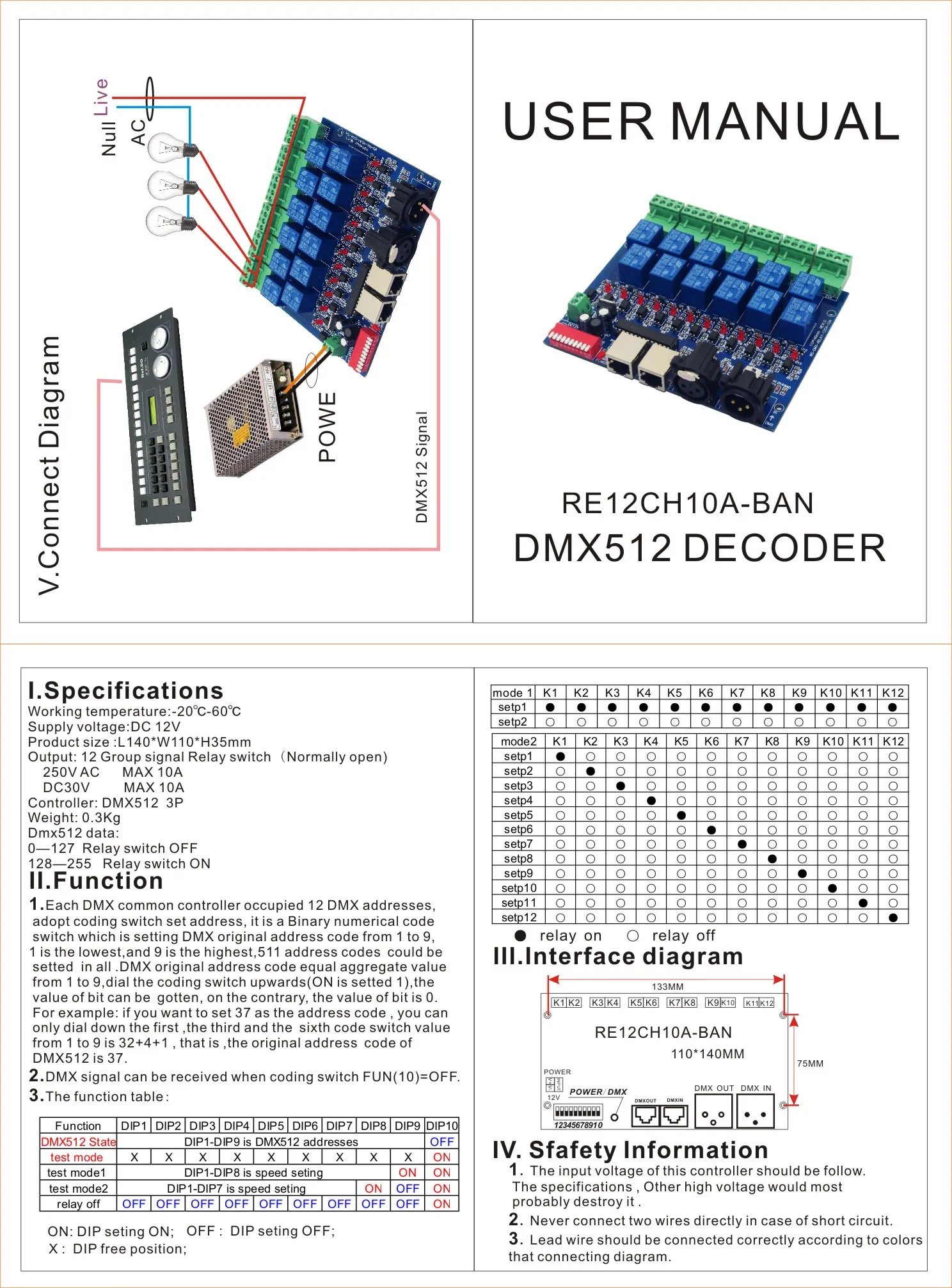 12-канальный релейный переключатель DMX512, 12-канальный релейный переключатель, 12-канальный релейный переключатель 10 А 2 А, декодер, диммер для светодиодной лампы