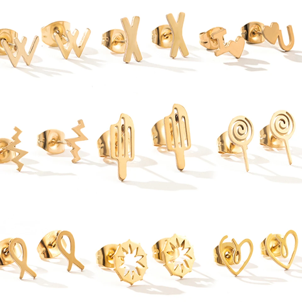 Модные милые маленькие серьги-гвоздики из нержавеющей стали для женщин и девушек, милые серьги золотого цвета, вечерние ювелирные украшения, подарок