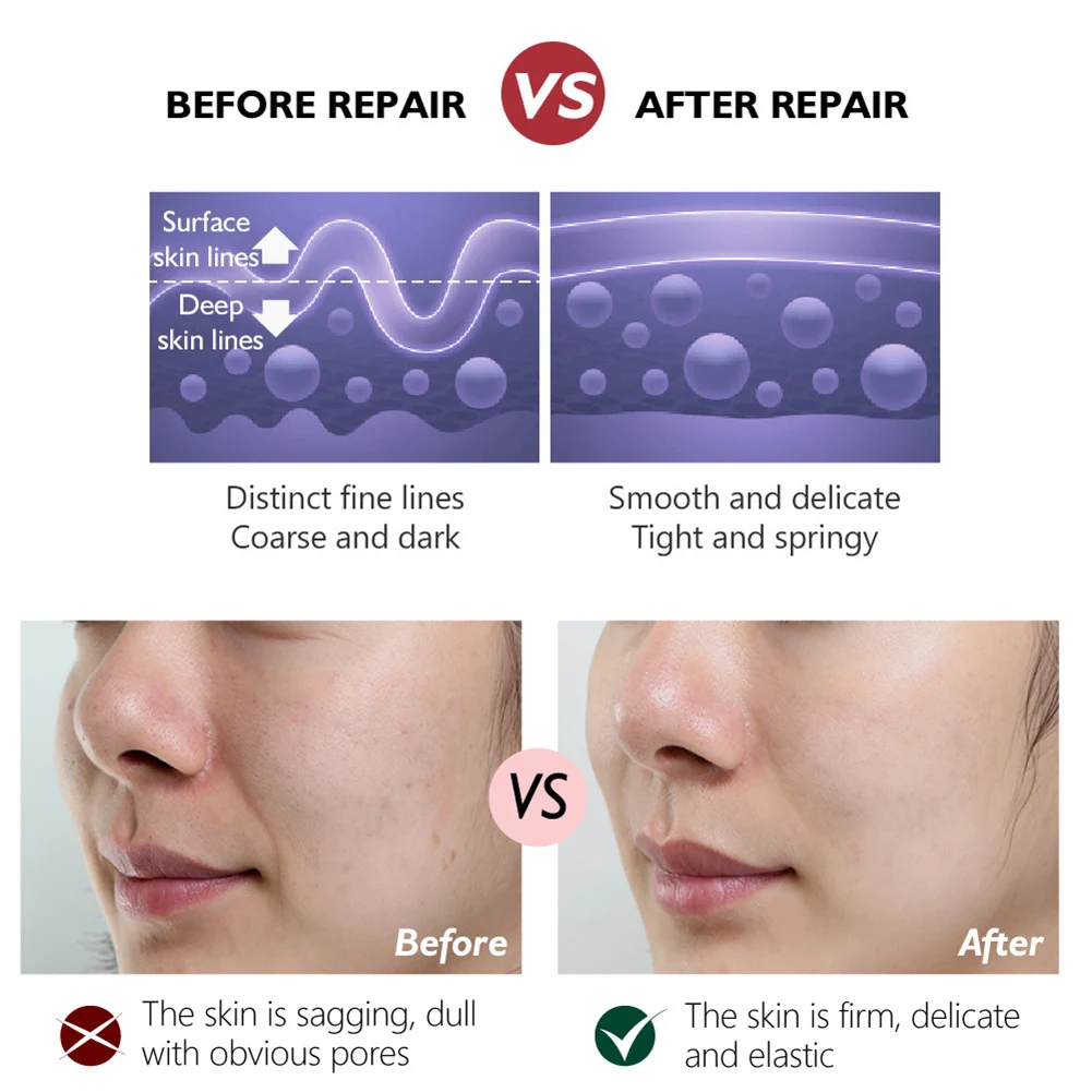 * 2. Помогает противостоять пяти видимым признакам старения, таким как морщины, тонкие линии, неровный цвет кожи, шероховатость и твердость.