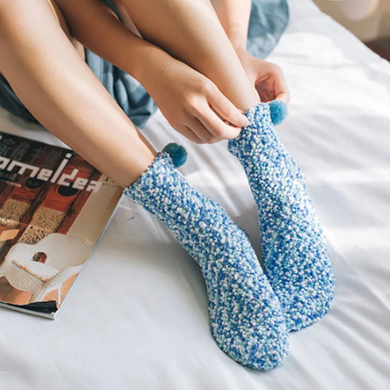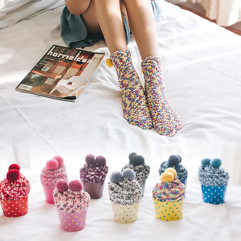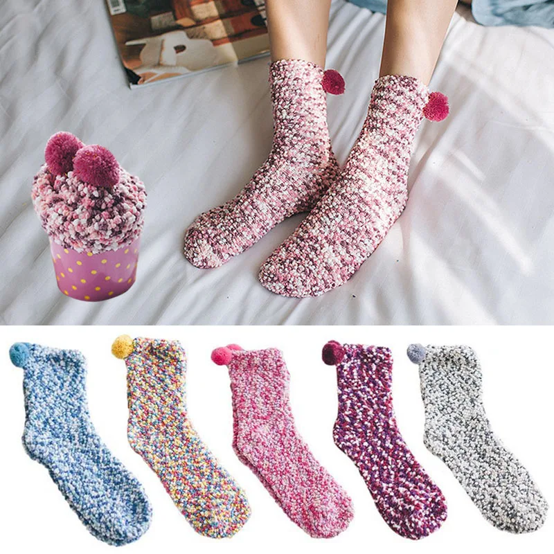 Модные женские зимние носки милый меховой шарик утепленные Мягкие плюшевые носки повседневные носки средней длины домашние носки для сна