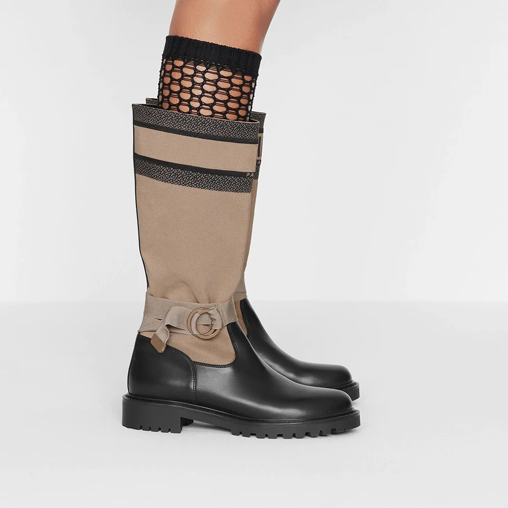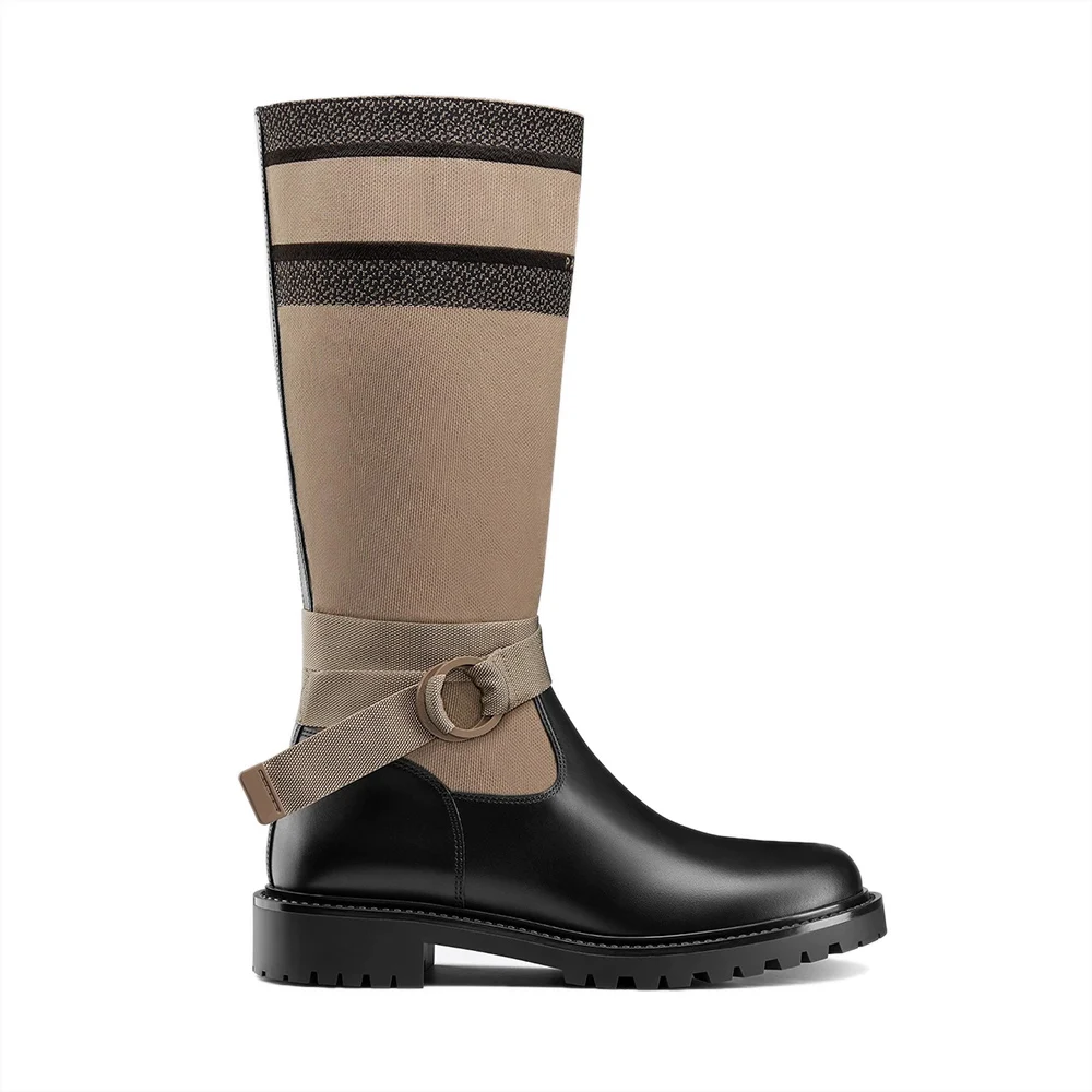 D-MAJOR ботинки из технической ткани и черной телячьей кожи с регулируемым ремешком ботильоны для женщин настоящая коровья кожа высокие ботинки до середины икры